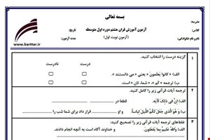 نمونه سوالات پایه هشتم نمونه سوال قرآن هشتم