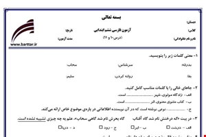 نمونه سوال فارسی ششم دروس 10و11 نمونه2جدید با جواب